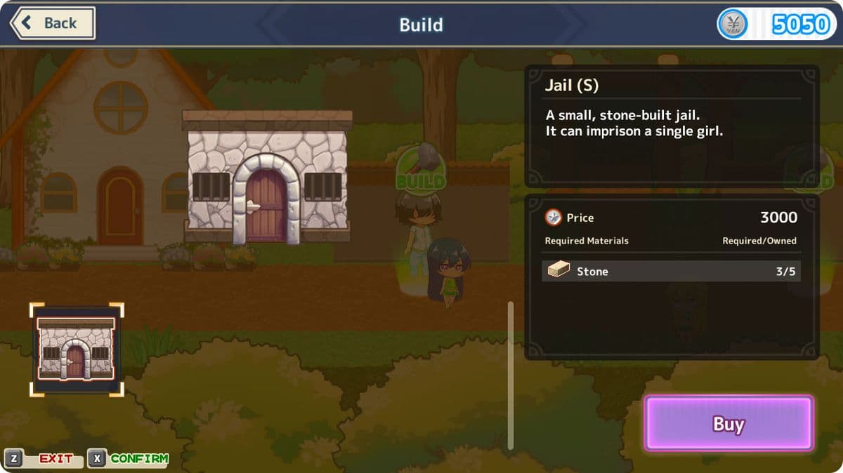 The 'Build' system, which allows for the construction of buildings like jails, is not available from the beginning. By solving the village's problems, you might be allowed to use the space freely...?